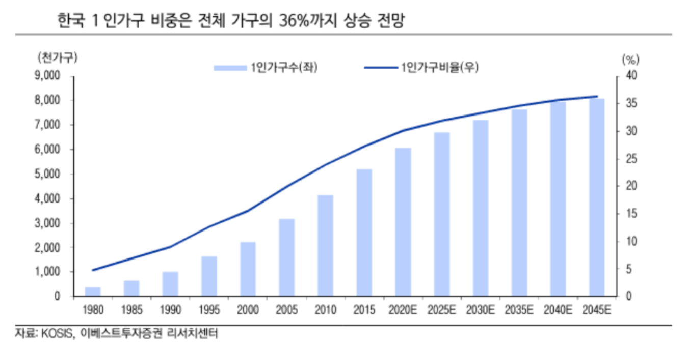 한국의 1인가구 비율은 무척이나 가파른 속도로 상승하고 있다.