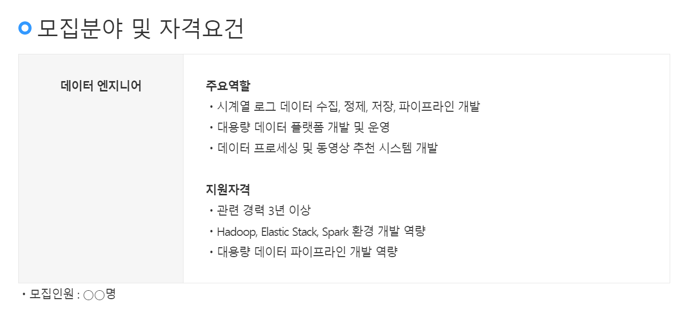 티빙은 데이터 엔지니어를 모집하고 있다.